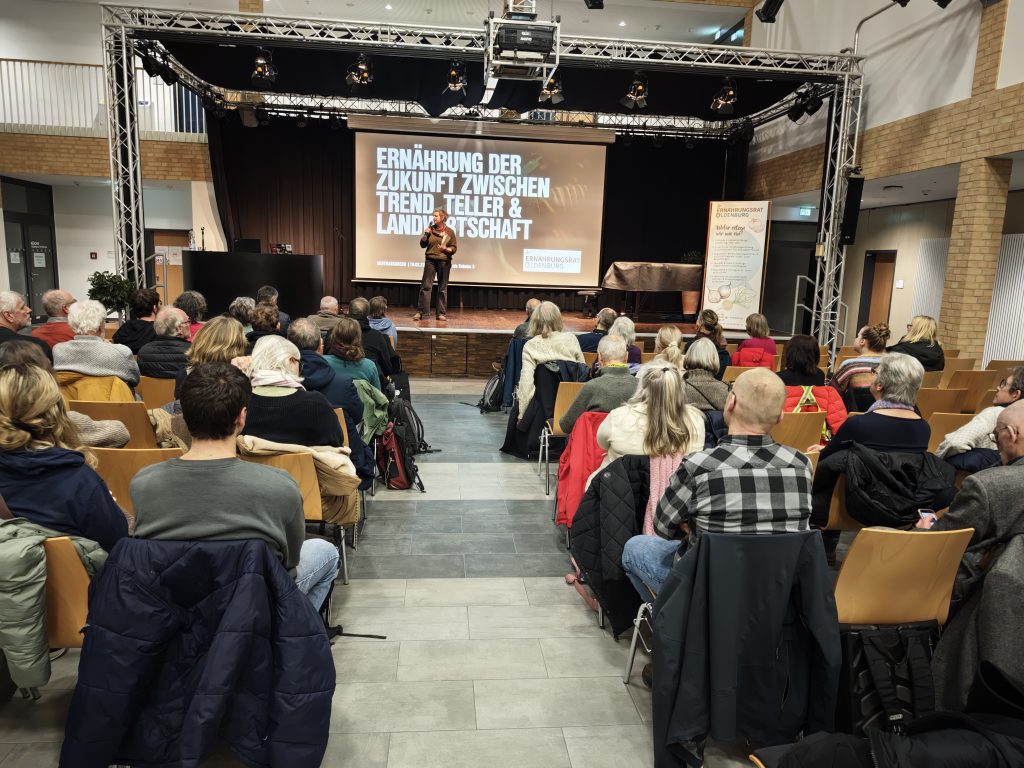 Wie werden wir uns in Zukunft ernähren und unter welchen Bedingungen entstehen unsere Lebensmittel? Diese Leitfragen standen im Mittelpunkt des öffentlichen Vortragsabends „Ernährung der Zukunft – zwischen Trend, Teller und Landwirtschaft“, der an den Berufsbildenden Schulen 3 der Stadt Oldenburg am 19.02.2026 stattfand. Organisiert von engagierten Schüler*innen der BBS 3 in Kooperation mit dem Ernährungsrat Oldenburg, brachte die Veranstaltung Perspektiven aus Konsum, Gesellschaft und Landwirtschaft zusammen und machte deutlich, wie stark unser Ernährungssystem im Umbruch ist.